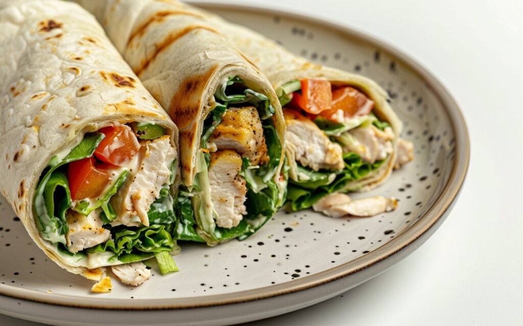 Die Wraps einrollen und direkt servieren oder für Meal Prep in Frischhaltefolie wickeln.